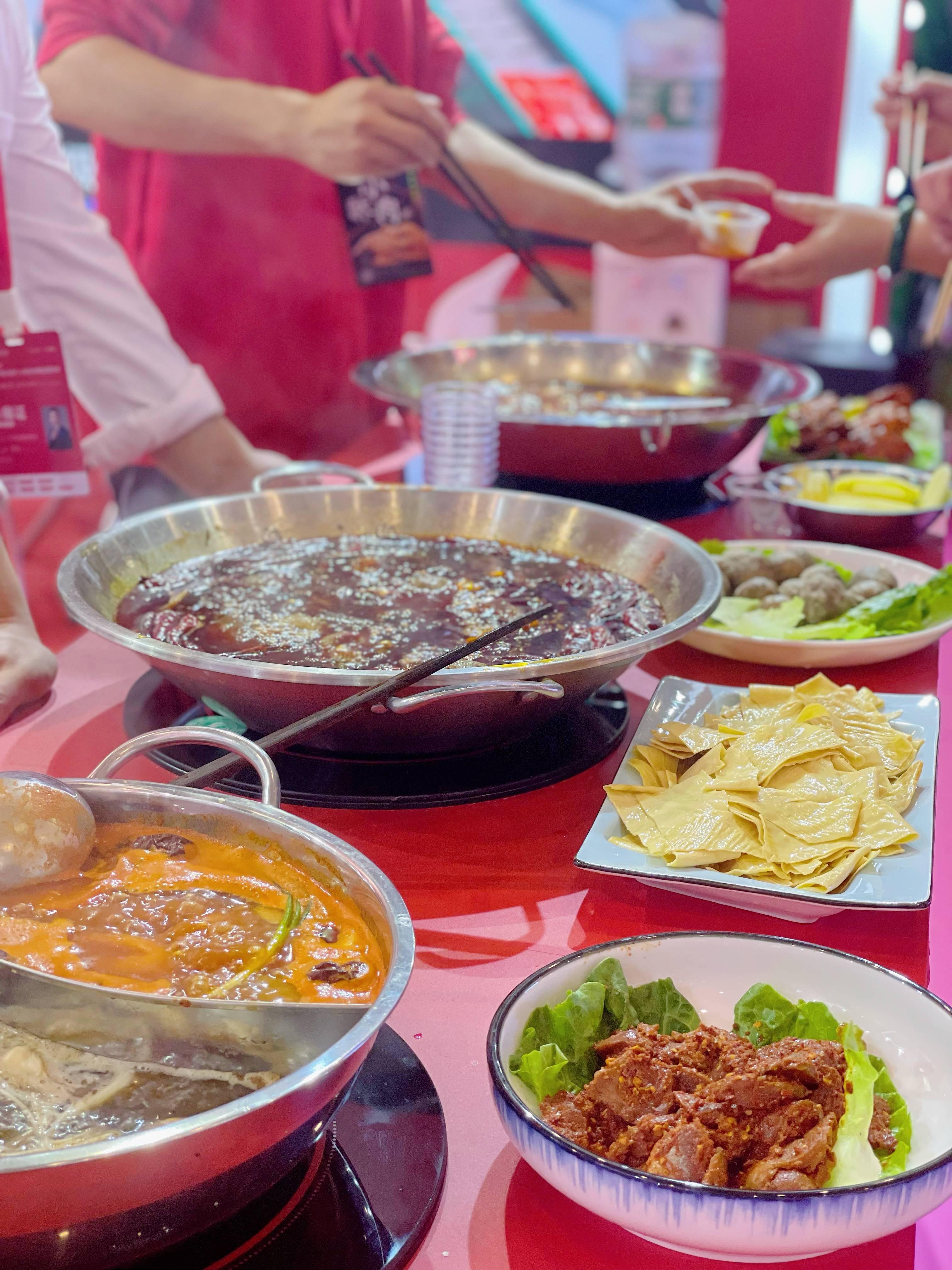 為了讓參會者更好地體驗“開門紅”系列產品,漫味龍廚此次展位共設三個品嘗區域,以現煮試吃的方式讓大家品鑒手工牛油火鍋底料的傳統風味,天府酵藏牛油火鍋底料的醇厚熱辣,以及番茄火鍋底料和菌湯火鍋底料的香濃。搭配新鮮的火鍋食材,吸引了大量經銷商、業內人士、游客聚集展位試吃,現場人氣爆棚,工作人員接待講解更是應接不暇,“開門紅”系列產品憑借自身實力受到了廣泛好評。